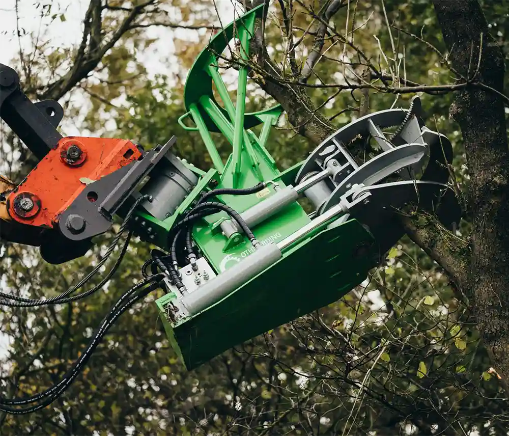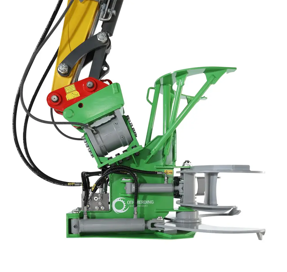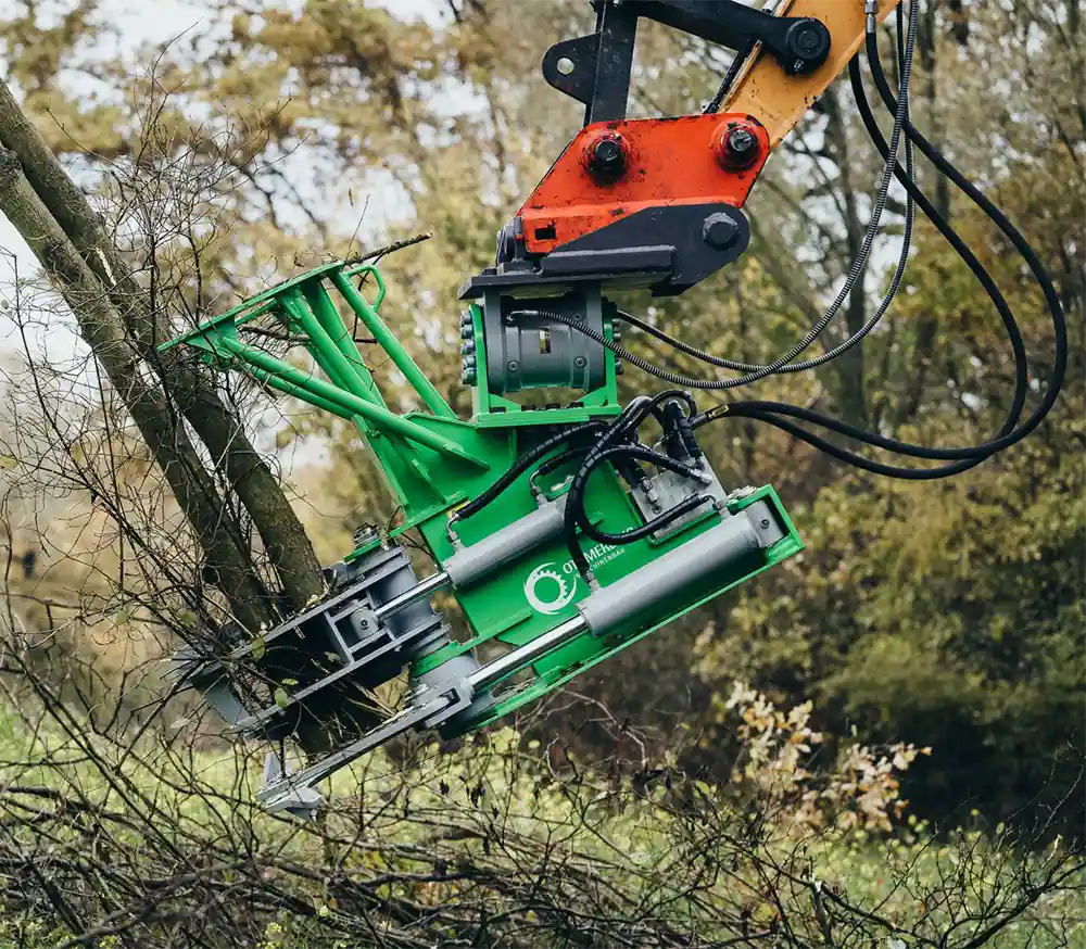 Die Baumschere TimberFORCE mit einem Schneiddurchmesser bis zu 30 cm ausgelegt für Bagger von 8-14 Tonnen, ist die ultimative Lösung für anspruchsvolle Arbeiten in der Landschaftspflege! Entwickelt für den Anbau an einen Bagger schneidet sie mühelos Hecken, Buschwerk und mittlere Bäume mit einem Stammdurchmesser von 30 cm und liefert dabei einen glatten und präzisen Schnitt. Ihre komplette Hardox-Stahlkonstruktion und gehärtete Stahlbuchsen garantieren eine unschlagbare Robustheit und Langlebigkeit. Doch das ist nicht alles – die TimberFORCE verfügt über einen einzigartigen, innovativen Ventilblock, der für eine herausragende Leistung und eine höhere Schnittgeschwindigkeit sorgt. Erleben Sie die Effizienzsteigerung mit dem optionalen Sammelgreifer und machen Sie sich die kompakte Bauweise zunutze, um Ihre Baumarbeiten auf das nächste Level zu heben!