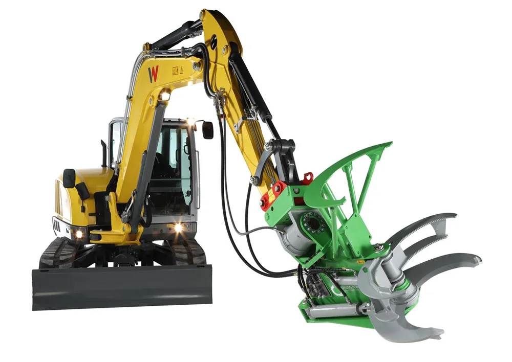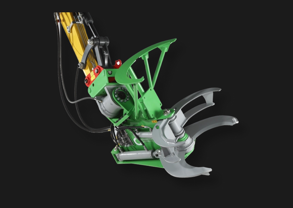 Einzigartig an der Baumschere TimberFORCE ist der innovative Ventilblock, der für eine noch nie dagewesene Leistung sorgt. Dieser Ventilblock optimiert den Ölfluss und ermöglicht eine präzise Steuerung der Baumschere. Dadurch wird nicht nur die Schnittgeschwindigkeit erhöht, sondern auch der Energieverbrauch reduziert, was sich in einer verbesserten Gesamtleistung widerspiegelt. Die Baumschere TimberFORCE ist in zwei Ausführungen verfügbar, in Standard oder mit Schnellhubventil, für eine höhere Schnittgeschwindigkeit. Zur weiteren Effizienzsteigerung kann die TimberFORCE mit einem zusätzlichen Sammelgreifer ausgestattet werden. So können mehrere Schnitte getätigt werden, bevor das Schnittgut abgelegt werden muss. Für mehr Sicherheit lässt sich alternativ, anstelle des Sammelgreifers, ein Zusatzgreifer an die TimberFORCE montieren. Eine Schwenkeinheit kann zwischen Baggeraufnahme und Baumschere gesetzt werden.