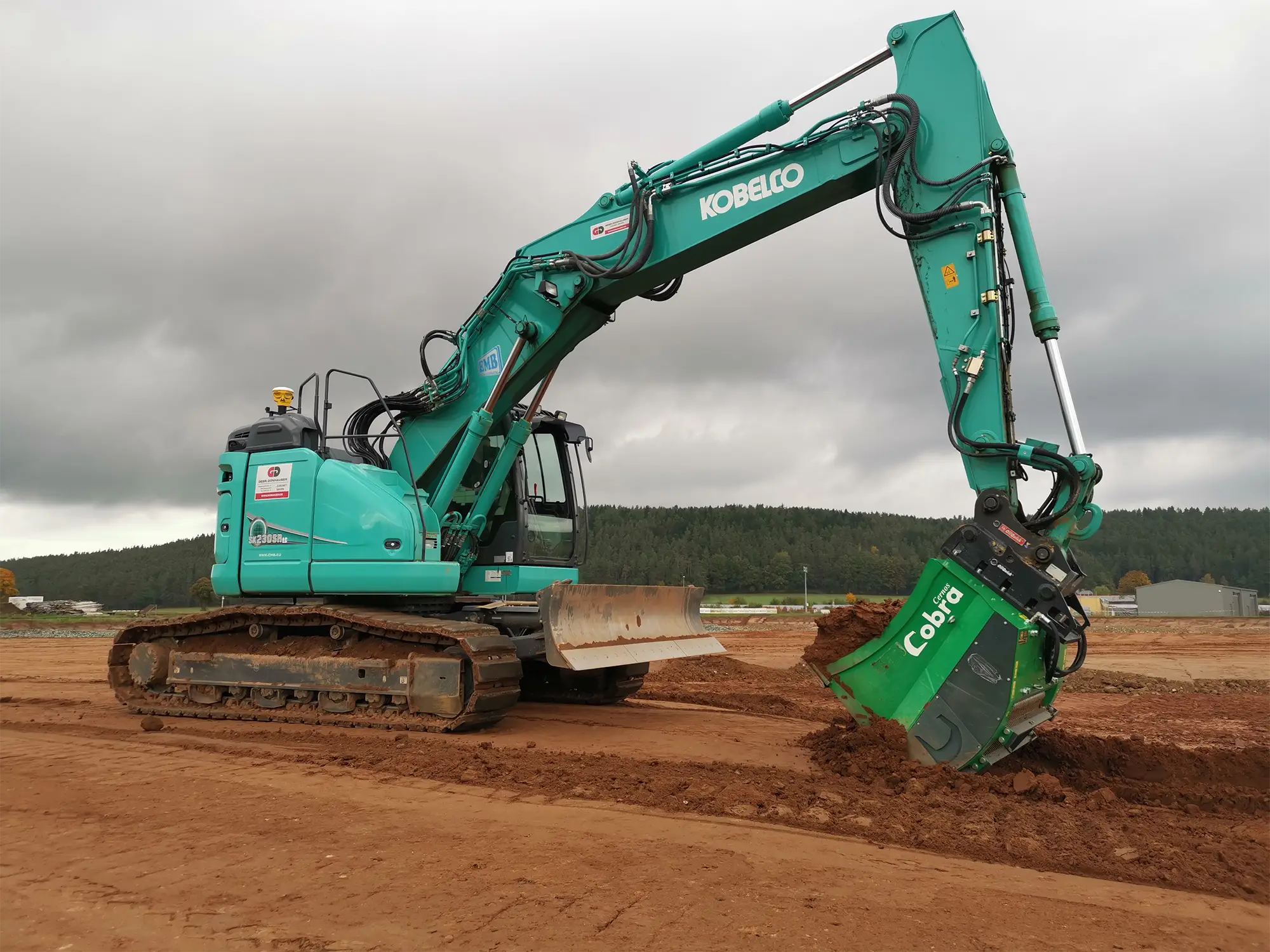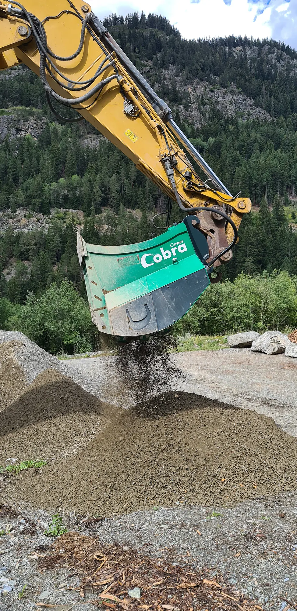 Die COBRA-Siebschaufel ist für die Verwendung mit Minibaggern, Midibaggern, Mobilbagger, Kettenbaggern, Radladern, Baggerladern, Teleskopladern und Kompaktladern konzipiert.