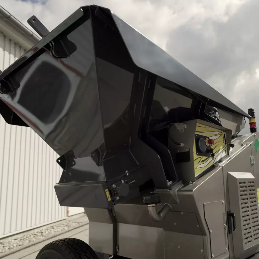 - Hydraulische Verstellung der Brechgröße über Funkfernbedienung