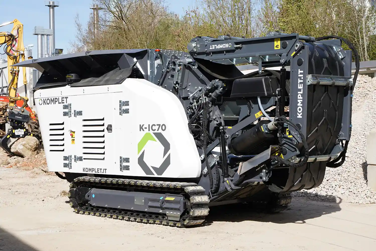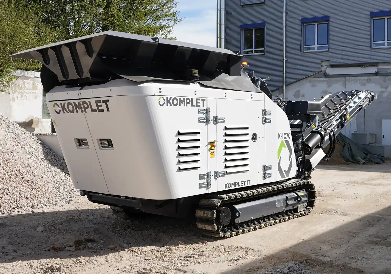 Die Komplet K-IC 70 ist eine wendige, kraftvolle und einfach zu bedienende Prallmühle für anspruchsvolle Recycling- und Baustellenanwendungen. Ob Bauschutt, Beton, Asphalt oder Naturstein – diese Anlage bietet beeindruckende Leistung bei kompakter Bauweise.